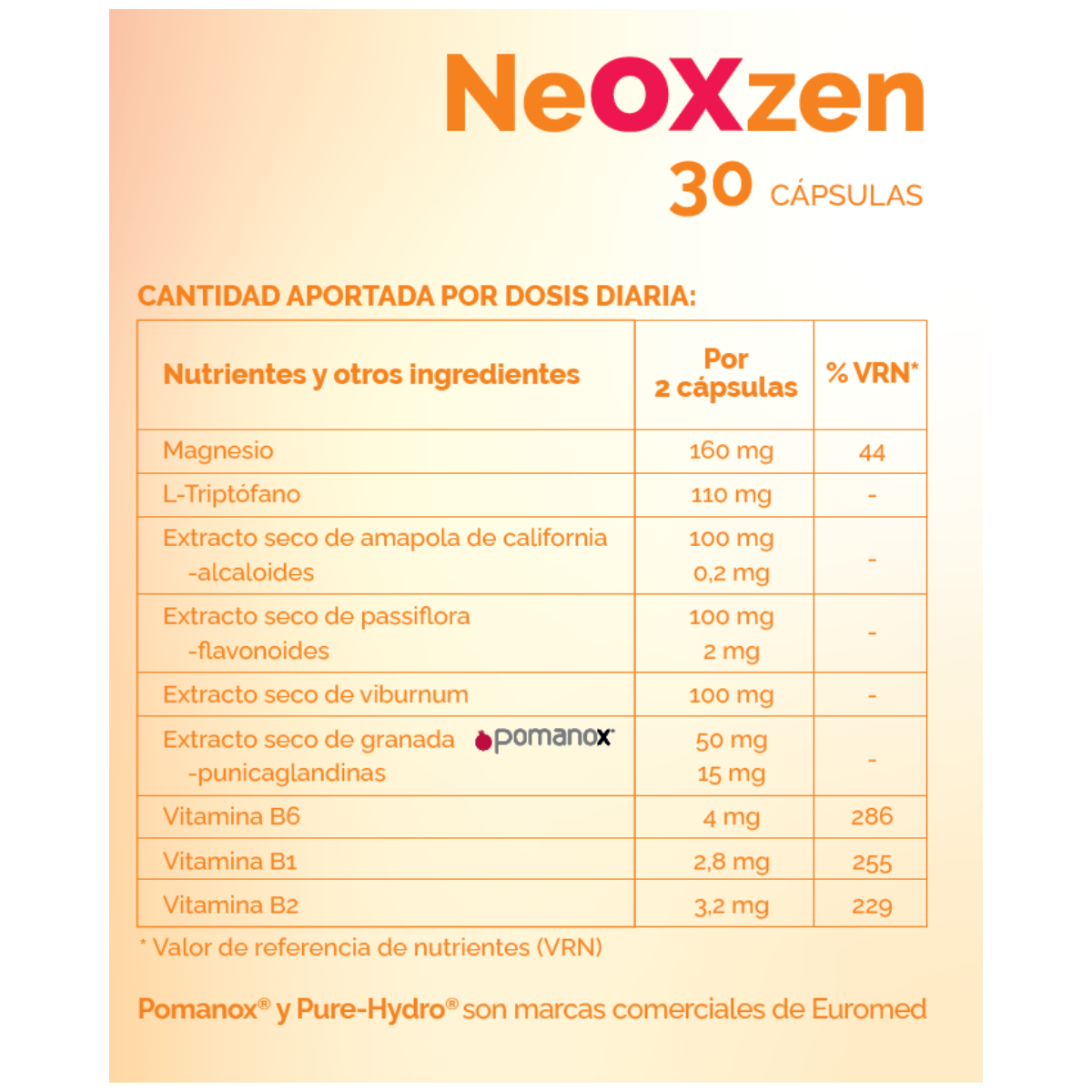 - Relajación: Neoxzen te ayudará a afrontar con calma el estrés de un estilo de vida ajetreado gracias a su contenido en Amapola y Pasiflora.